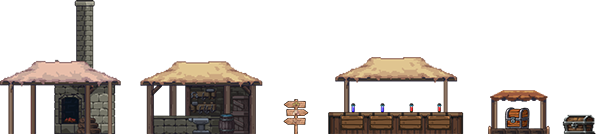 As the village expands, new residents construct new structures that can be used by the player throughout the adventure. Among these structures is the furnace, where the ore collected by the player can be melted and transformed into bars, the anvil, where items can be repaired, and the market, where the merchant sells their items.